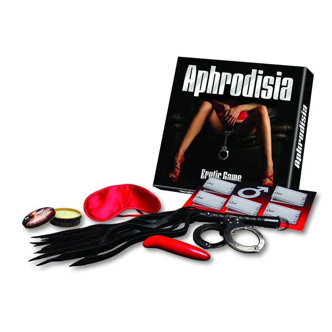 An erotic board game for couples searching for new sexual experiences. Unlock doors and open your mind to a path filled d with carnal pleasures, sensation play and sexual positions that drive excitement to an entirely new level. Surrender control as only your partner will know what awaits you behind each door. To heighten the sexual pleasure tenfold, playing blindfolded is mandatory . Handcuffs, whip, vibrator, erotic oil Everything you need to make playing APHRODISIA a lasting sexual experience.