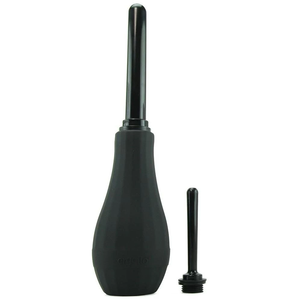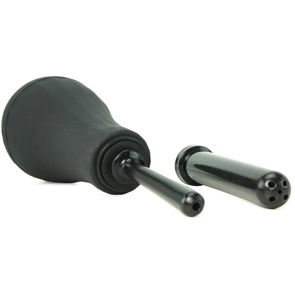 The douche has a narrow, smooth tip and a silicone squeeze ball for a good grip. Fill the ball with water, apply some anal lubricant to the nozzle and insert it. Then carefully squeeze the ball until it is empty and repeat this process for a thorough cleanse. This set comes with a 5″ ABS tip and a 3″ stowaway tip.