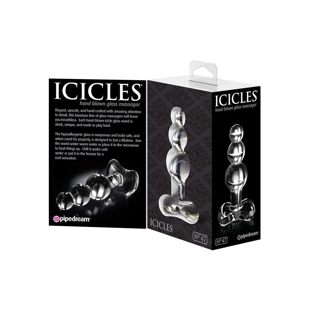 Designed for a lifetime of use and service when properly cared for, the Icicles No. 47 Glass Butt Plug features a graduated series of rounded spheres, from smallest to largest, ensuring ease of penetration and also aiding in retention. Additionally, also having a conforming base preventing the glass butt plug from traveling further than is intended.