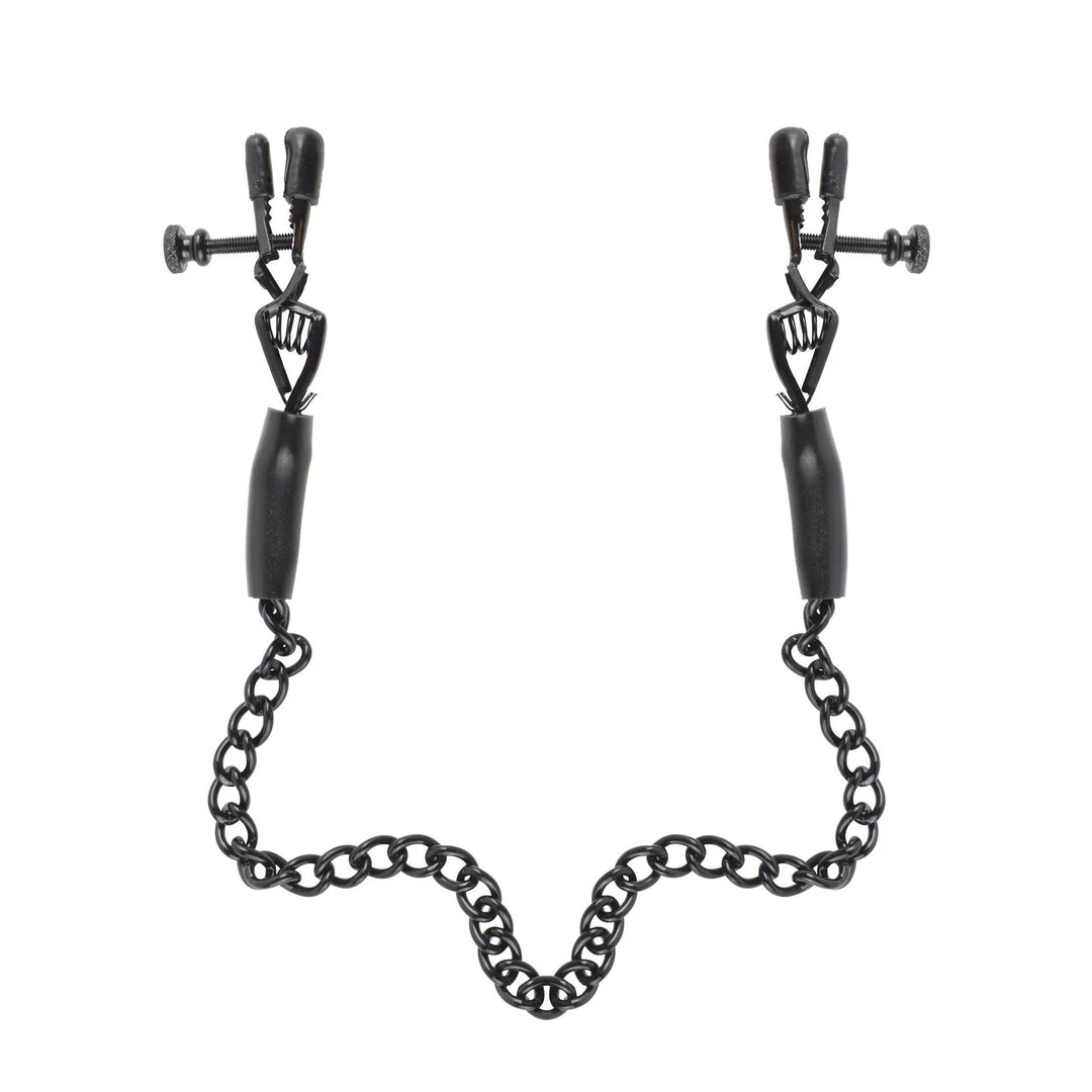 Ideal for use as part of progressive sensory play, your erotic response can be deepened by pulling on the chain or using a vibrator to send delicious shivers through your sensitive nipples. In rubber and nickel-free metal, these nipple clamps should be spot cleaned as needed.