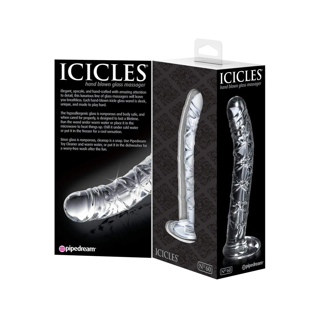 The Icicles Glass Dildo has a phallic theme, but is specific in its curvature to promote profound G and P-spot stimulation, while still giving immediate and intense sensations from the pronounced and constant raised design, creating a stunning patterning, as well as an erotic feast for the senses…