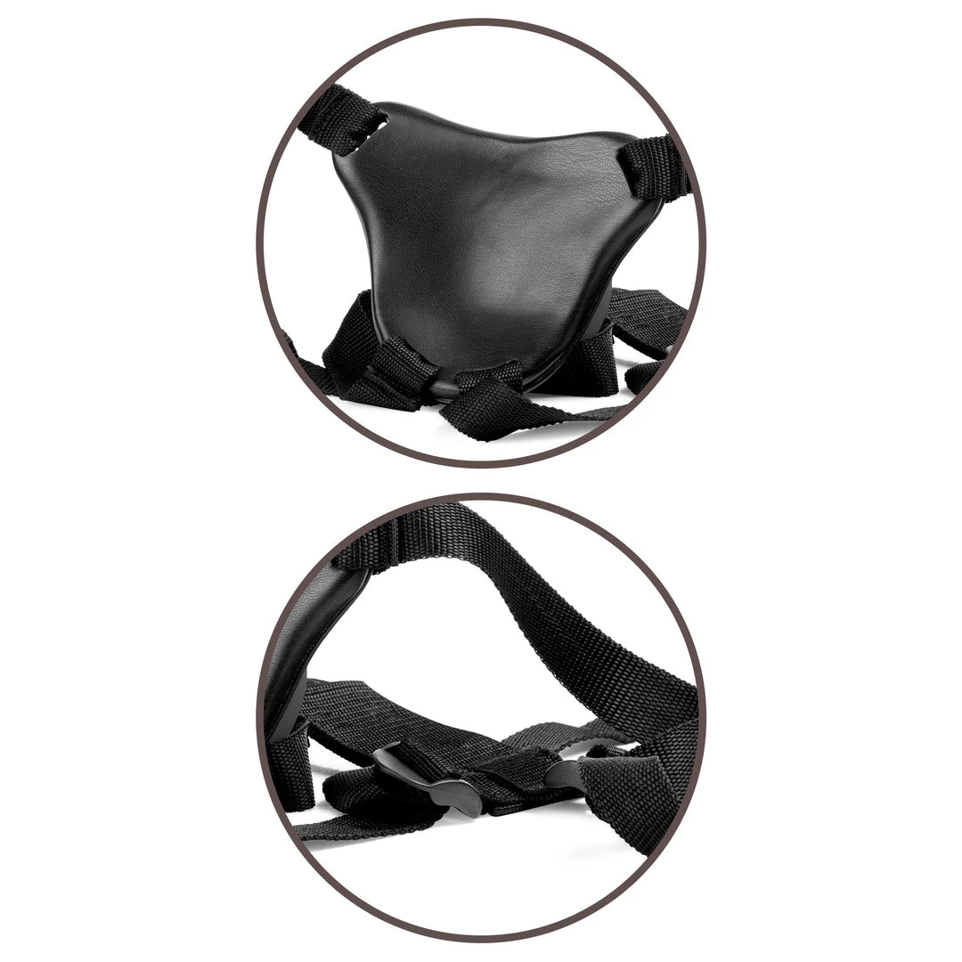The King Cock Comfy Silicone Body Dock Kit has the Body Dock Harness with the patented Push & Play strap-on harness system and a dual-density Elite Silicone dildo with a suction cup. The body dock plate is angled to keep the dildo on the suction pad in an erect position for more comfortable use. The suction dock has a form-fitted padded backplate that helps distribute the pressure evenly and allows more natural use of the dildo. The harness is held with heavy-duty nylon straps that you can adjust with the plastic adjusters, and the waistband adjusts to fit sizes of up to 54”. You can use the Body Dock plate with other harnesses if you wish.