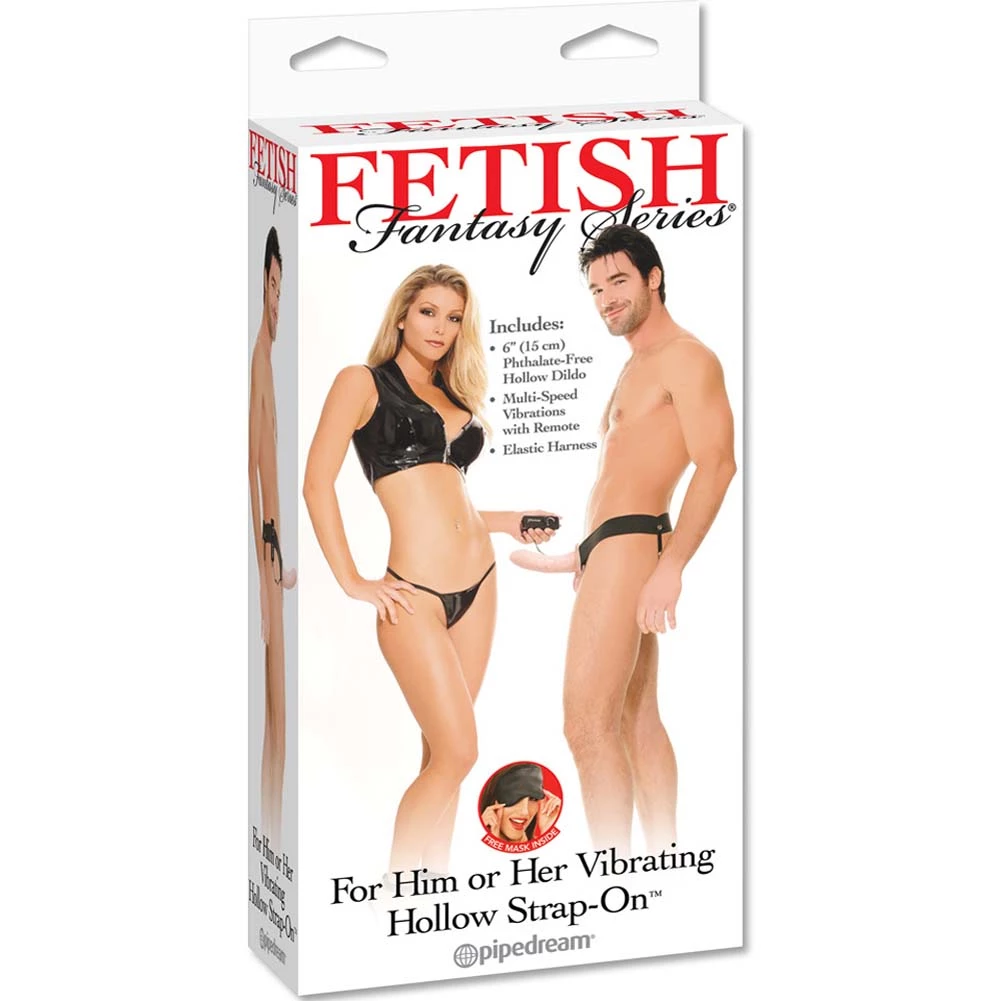 For him or her… or both. This vibrating strap on is the ultimate pleasure center for giving and receiving in couples play. The hollow dong is ideal for men to use, adding girth and inches or for times when getting or staying hard is a challenge. The stretchable, ‘one size fits most’ harness is easily fitted to fit the female who wants some girl on girl action, or has a male partner with a penetrating anal fantasy that she can help him with. It also features a vibrating unit, which can be utilized to send extra levels of pleasure throughout the entire device and to both users.