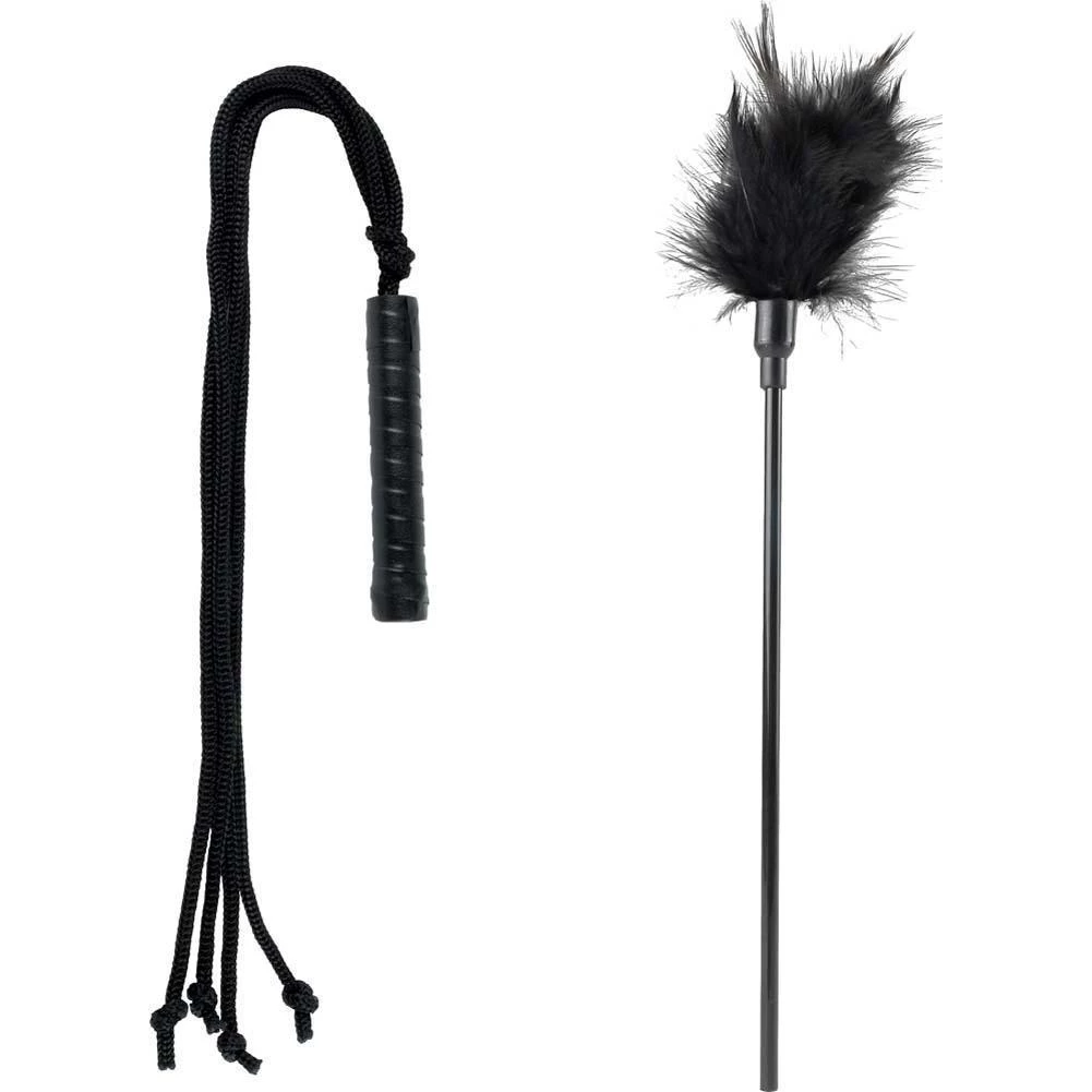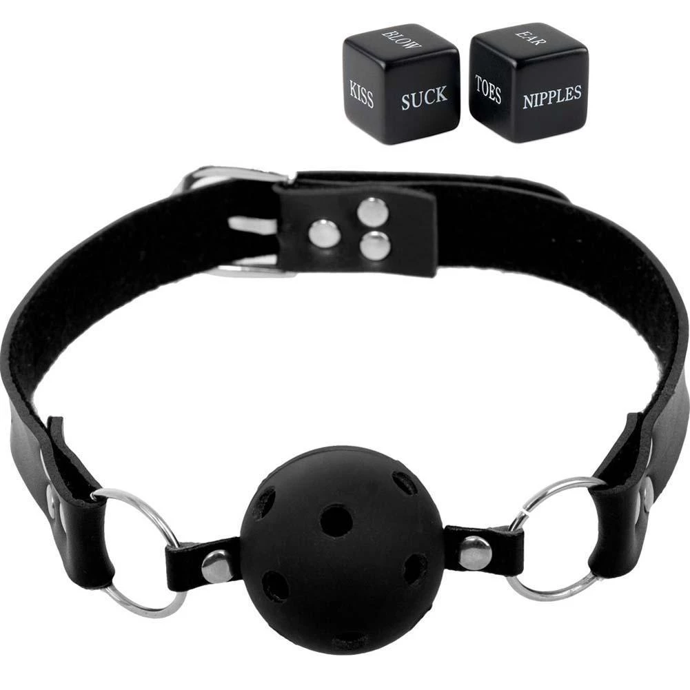 - Includes a feather tickler, breathable ball gag, rope whip, satin love mask and sex dice