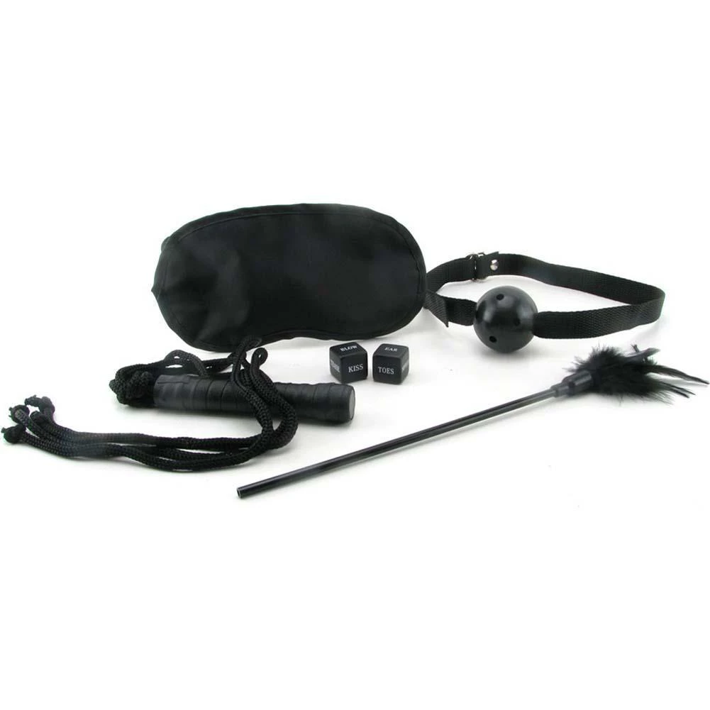 Turn your bedroom into an erotic playground with this naughty kit. This kinky collection is perfect for bondage beginners and offers something exciting for everyone. Break the ice with a flirty game of erotic dice, then blindfold your lover and begin to take advantage of your subject. Tease your partner with the soft feather tickler, then make them pay with the rope cat o’ nine tails. If they say too much, put the breathable ball gag in their mouth and show them who’s boss. The possibilities are endless…and so is the fun!Â