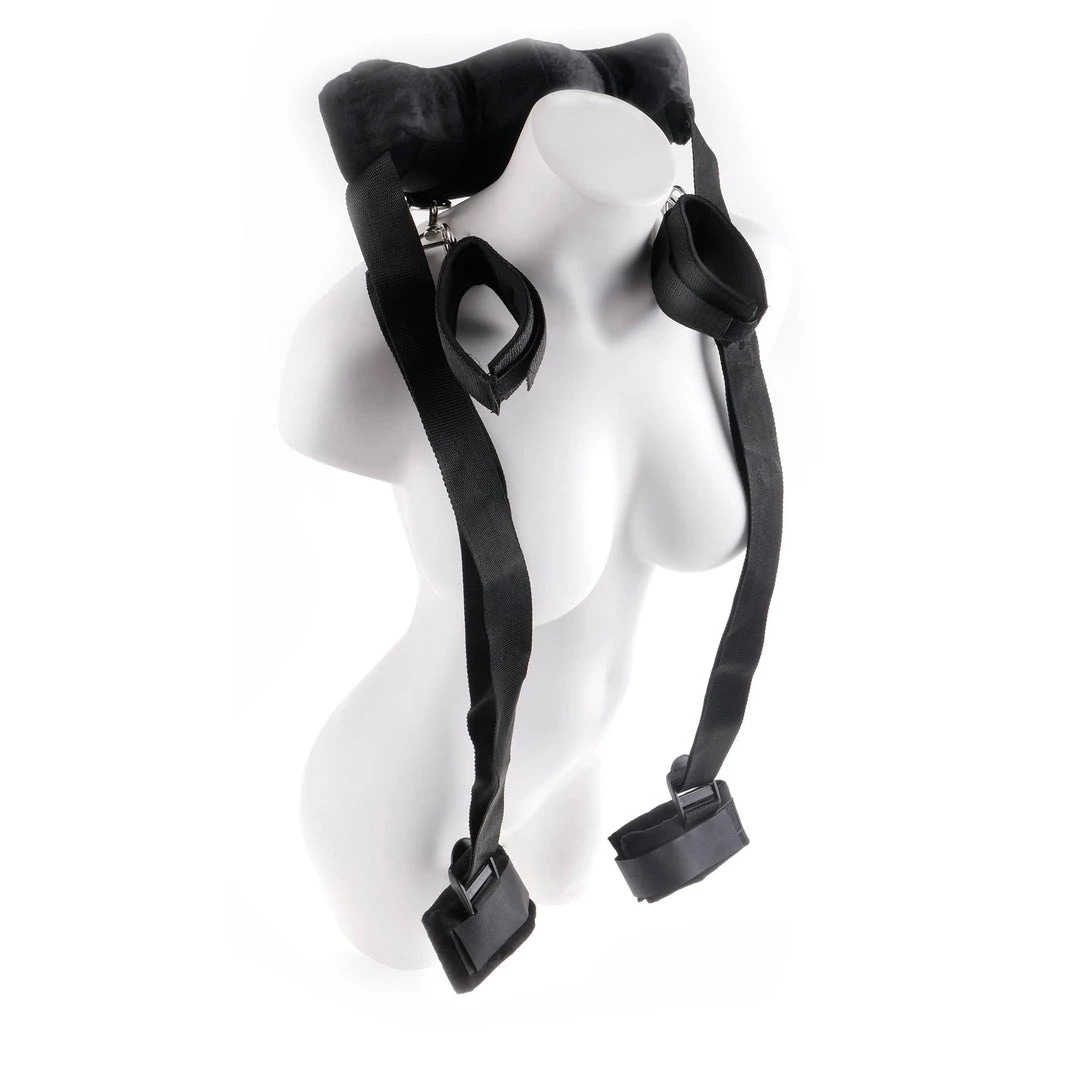 - Includes a plush neck harness to ensure maximum comfort, 2 sturdy leg cuffs that keep you in place and 2 handcuffs
