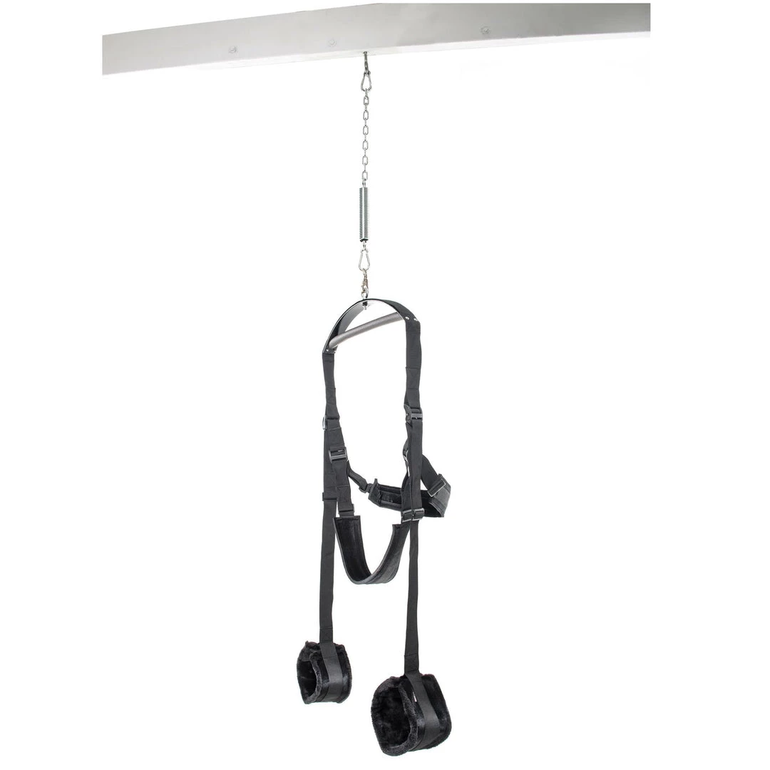 Unlike ordinary stationary swings, the Spinning Fantasy Swing rotates 360 degrees, allowing you to spin freely while you swing with increased range of motion. Twist, twirl, and try new positions you never thought were possible. The unique swivel clip connects to the torsion spring and swing frame, turning the fantasy swing into the ultimate bondage accessory. It’s perfect for beginners and fun for everyone! This swing has a 350 lbs. weight limit.