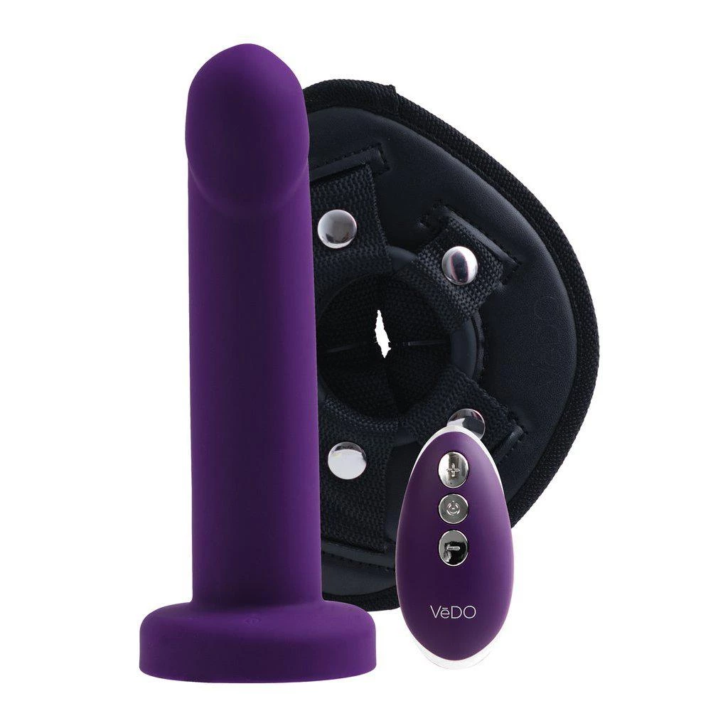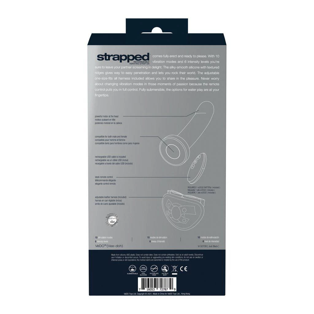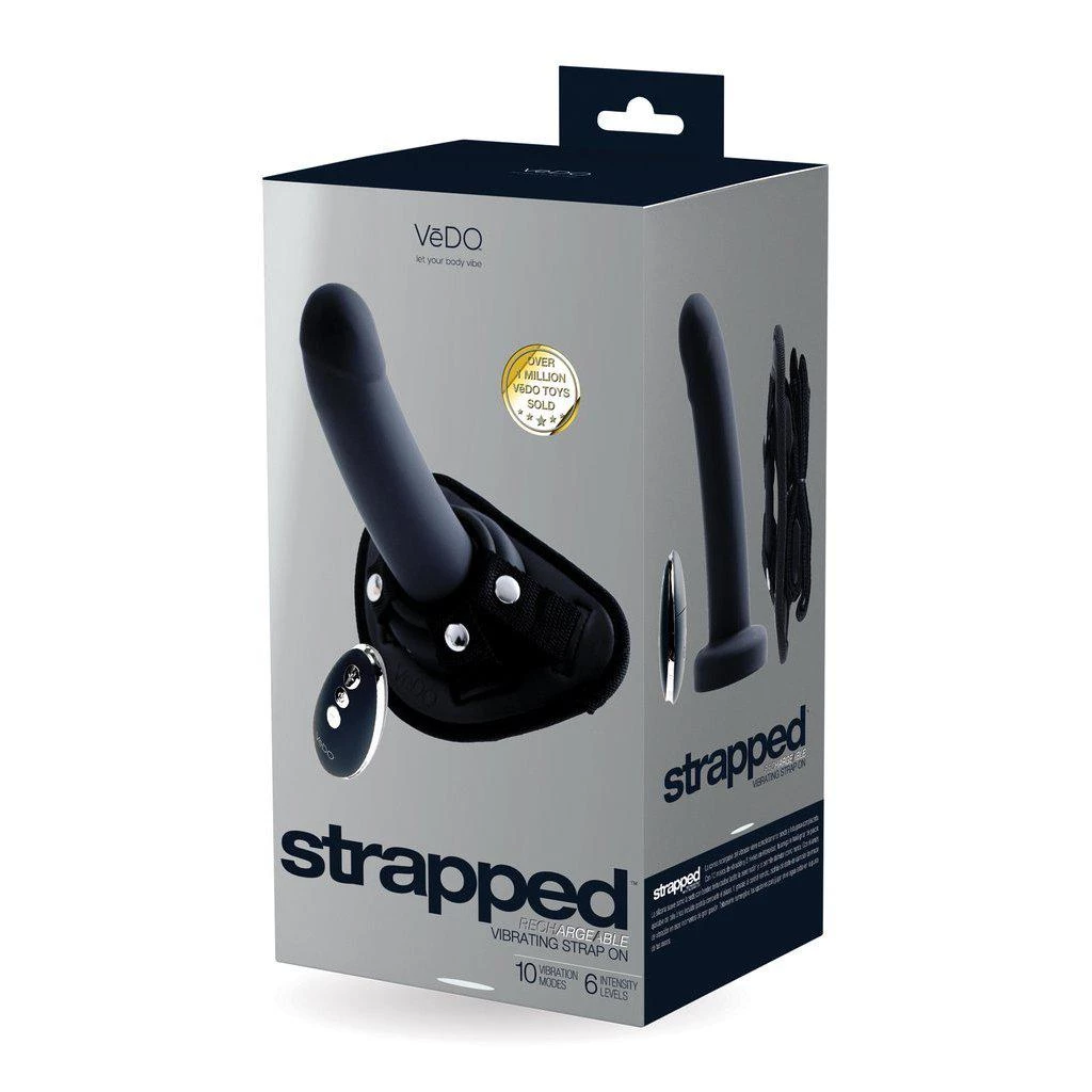 The Vedo Strapped Rechargeable Vibrating Strap-On is an impressive silicone vibrator placed in a harness. The vibrator is phallic-shaped; it has a slight curve that can easily hit the P or G spot and has pleasure ridges to enhance the stimulation. It is made from phthalate-free, body-safe silicone best used with water-based lubes.