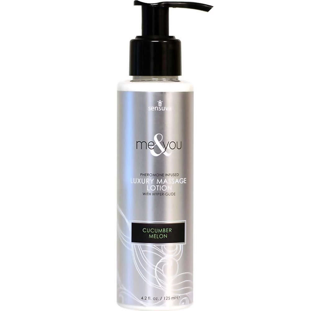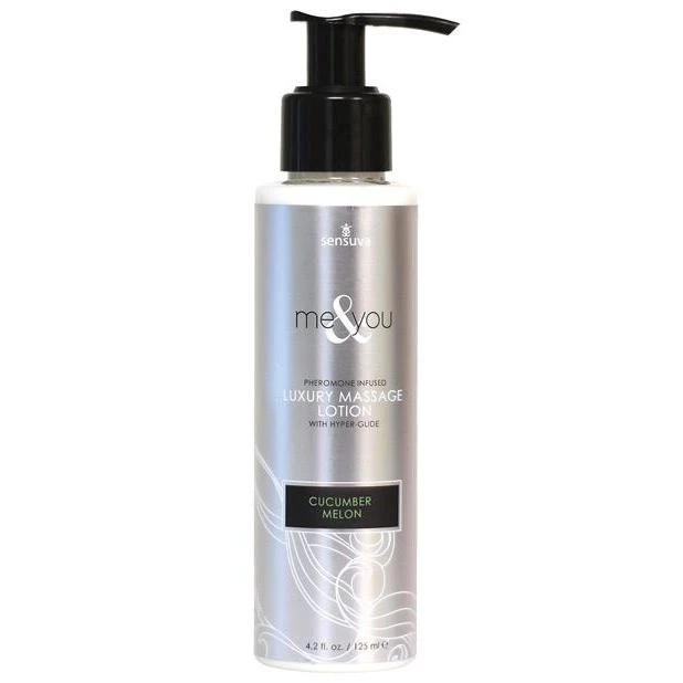 The ME & YOU line of luxury massage oils and lotions are infused with (gender-friendly) pheromones to make both partners feel attractive and turned on. We’ve added our special hyper-glide, which has a touch of silicone so that your massage oil or lotion can stay on the surface of your skin longer. A little bit goes a long way and you will end up using less product and be able to enjoy a longer lasting massage. Cucumber Melon. From Sensuva.