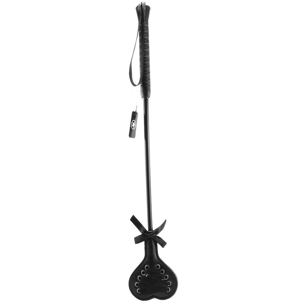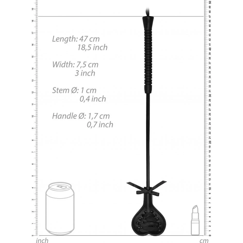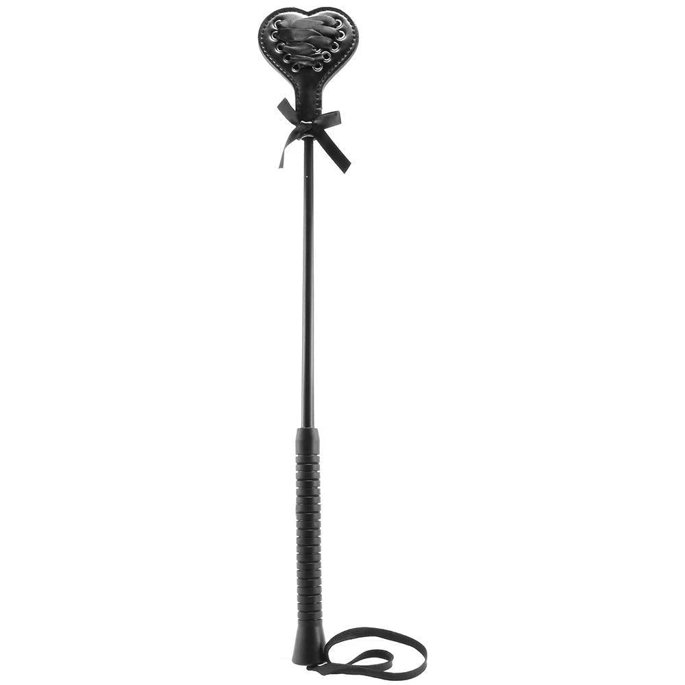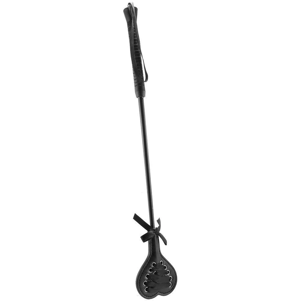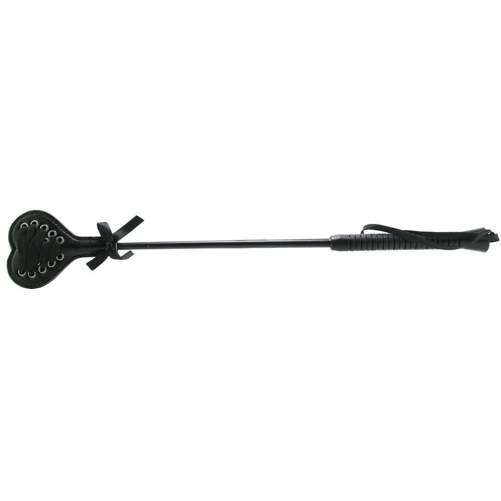 Black ribbon crisscrosses up one side of the heart shaped tip, while the opposite side is nice and smooth. The lacing will cushion the playful blow just a little – use the smooth side for a bit more bite. This novelty product comes in a sexy, seductive all-black hue with a jet-black wrist loop and silver hardware for a look that is as safe as it is eye-catching and naughty.
