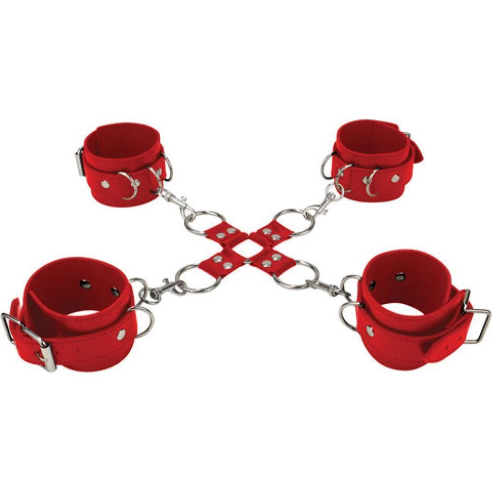 Do you want to secure your bottom or enjoy damsel in distress scenes? If so, this heavy-duty kit is just what you need to make every bondage game extra thrilling. This easy-to-use kit includes adjustable leather wrist and ankle cuffs and deluxe metal buckles and clips that can be used in any way your kinky heart desires.