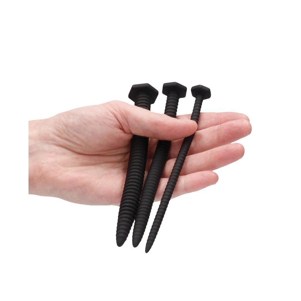 OUCH! introduces a new line of toys for urethral explorers! If urethral sounding is your kink, then let these smooth probes deliver the ultimate pleasure. The urethra is lined with super-sensitive nerve endings, which can be extremely pleasurable when stimulated. Additionally, deep urethral play is the only way to directly massage the prostate. This set has a variety of urethral sounding probes for beginners as well as advanced users! This set of 3 screws have smooth pointed tips for easy insertion. The flat rounded head allows for safe and easy extraction.