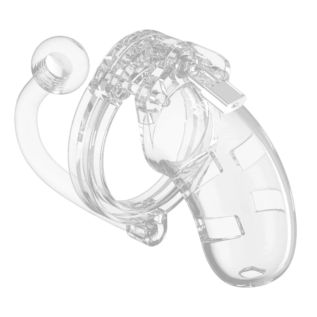 Features: Chasity cage, inescapable, comfortable, designed for long term wear, restricts erection, includes brass security lock, one-size-fits-most, clear design, phthalate-free