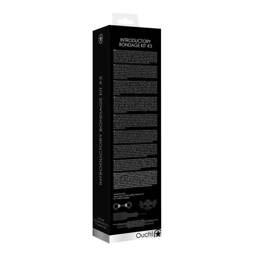 - No 3: Comes with sexy lace mask, 12-inch leather paddle and furry metal cuffs.