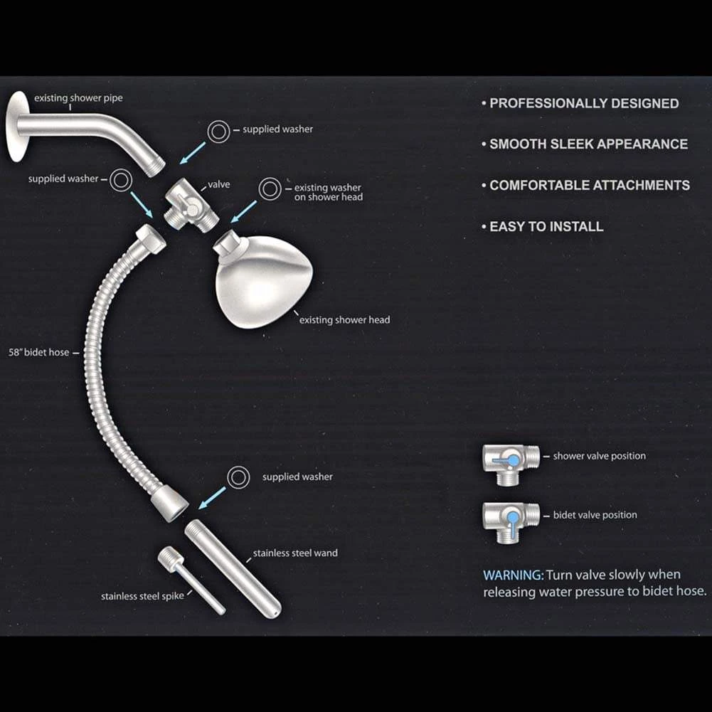The shower enema comes equipped with two comfortable nozzles, each suited for either anal or vaginal douche/enema. The whole set is solidly constructed from surgical stainless steel, and features a flexible, segmented hose which is long enough to be easy to use and convenient for reach, but isn’t a bulky or cumbersome effort to use or install.
