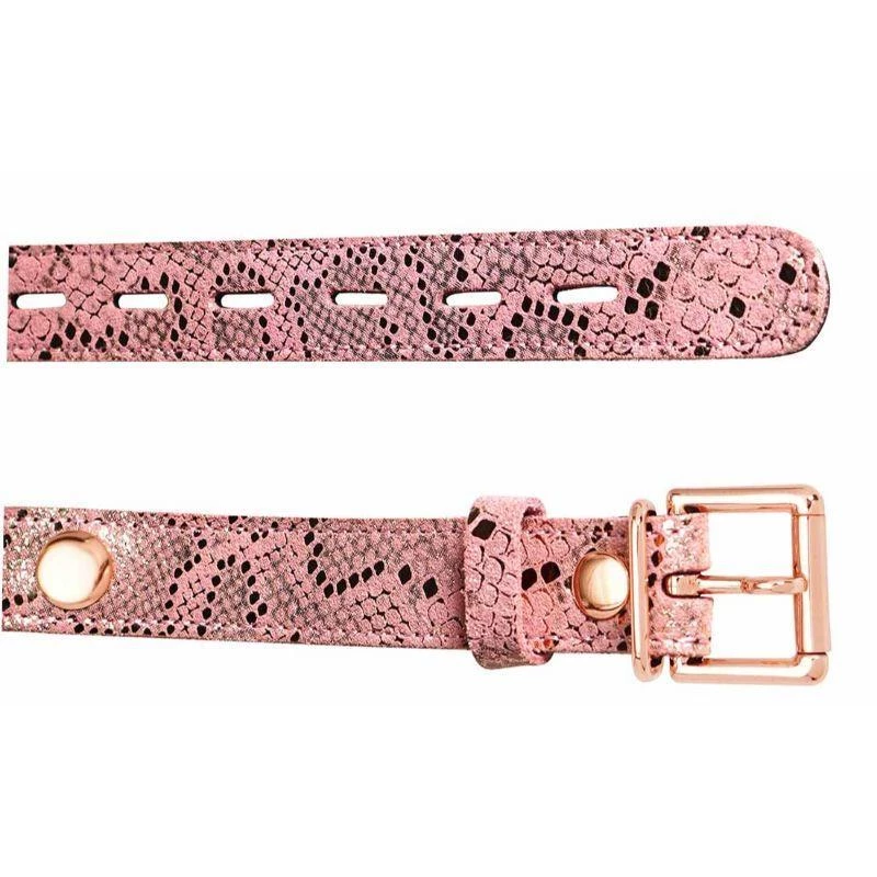 - Quality faux snakeskin leather straps with elegant stitching hold it in place