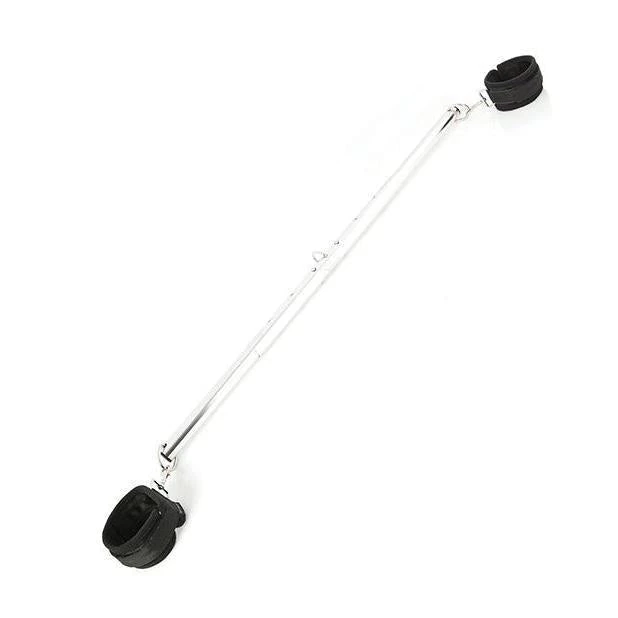 Expand Spreader Bar and Cuffs Set is made from comfortable neoprene and Velcro cuffs. Cuffs are attached to a spreader bar. A classic bondage item is now out of the dungeon and in your bedroom. Soft, neoprene cuffs are attached to a rigid, metal bar to keep your partner in place. Cuffs are a one size fits most. Squatting or standing are two favorite sex positions for using this restraint. Metal d-ring on each end make snapping cuffs in place a quick operation. Velcro closures make this an easy on easy off positional tool.