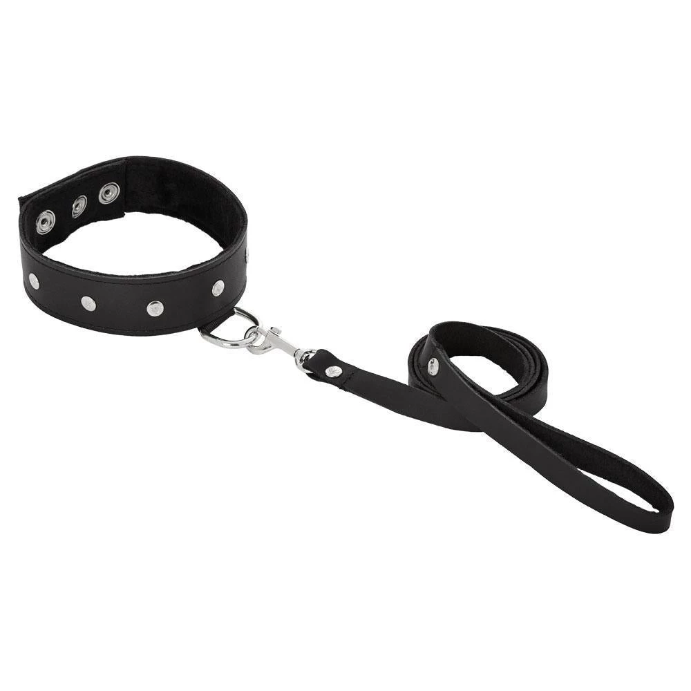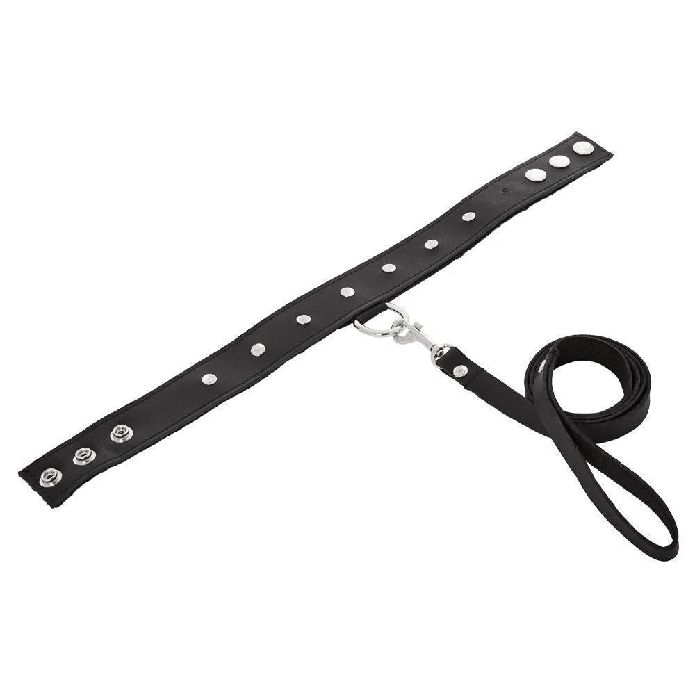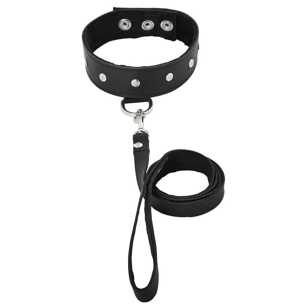 - A faux leather leash is attached to the collar for all sort of dominant/submissive play