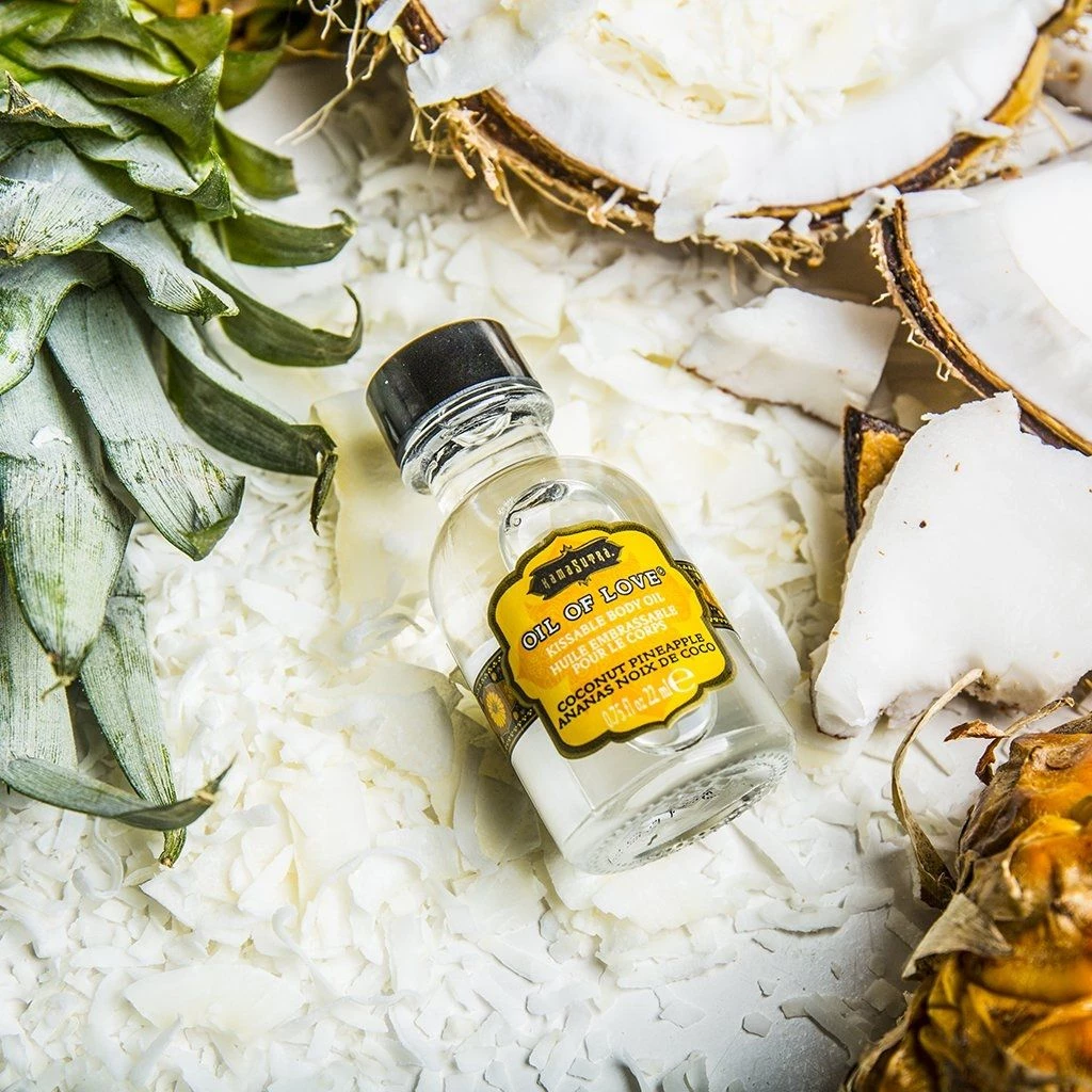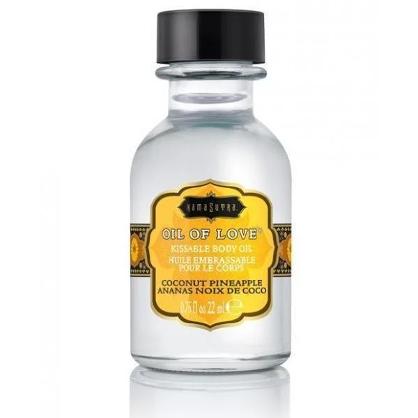 Kissable, water-based foreplay oil that gently warms on the skin. Use the included dropper to apply Oil of Love to the erogenous zones of the body, lightly blow on the area to experience the gentle warming sensation and follow with kisses, enjoying the sweet flavor. Not a massage oil or a lubricant. Delicious, kissable body oil but only an oil by name-water-based, non-staining formula. DROPPER NOW INCLUDED! .75 fl oz. bottle