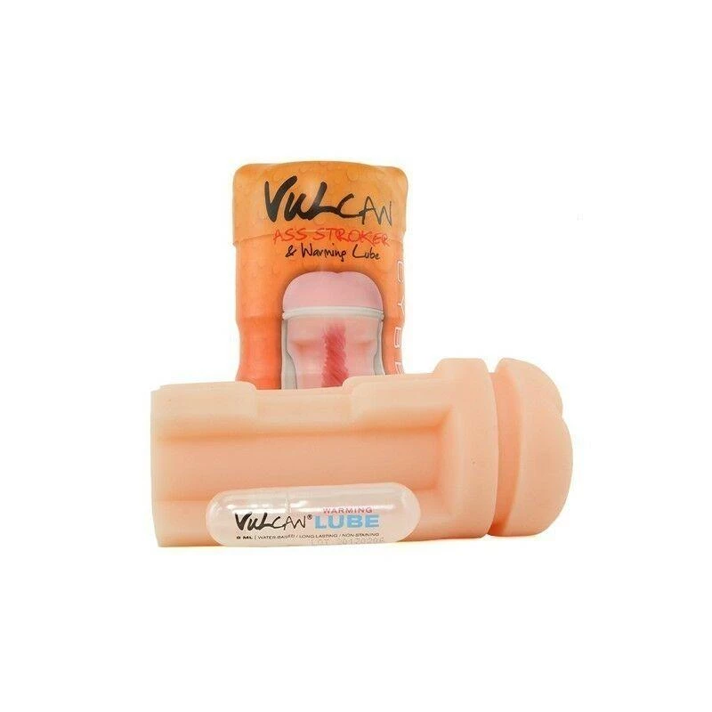 The Vulcan Ass Stroker and Warming Lube offers an authentic simulation of anal sex from its tight elastic opening to its finely ribbed snug sleeve! The gently warming water-based lubricant heightens sensations while the grip and pull of the textured tunnel coaxes users to a satisfying release.Â