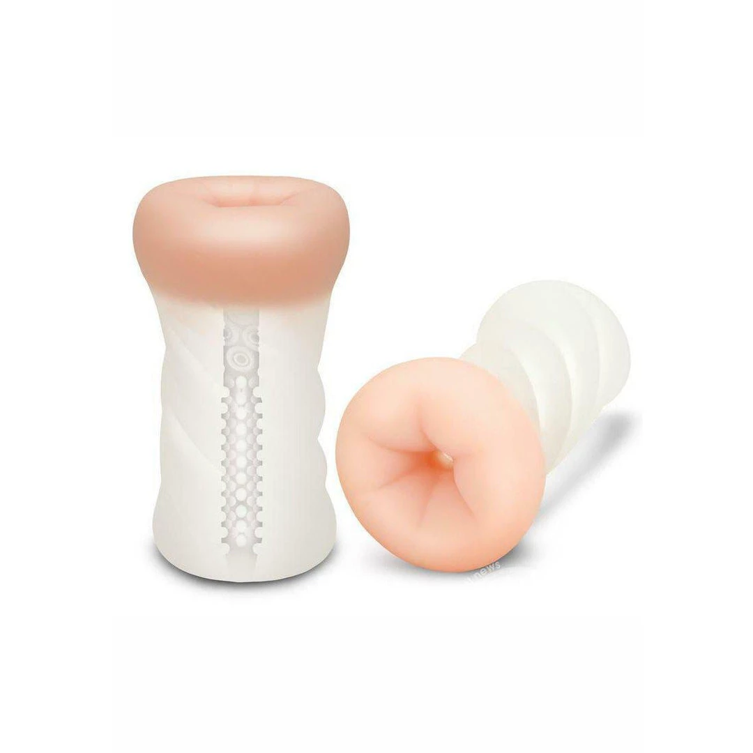 Features: Oral stimulator, mouth stroker, squeezable cup, tight and textured, waterproof, removable sleeve, open-ended sleeve, easy to clean, phthalate-free, warming lube included