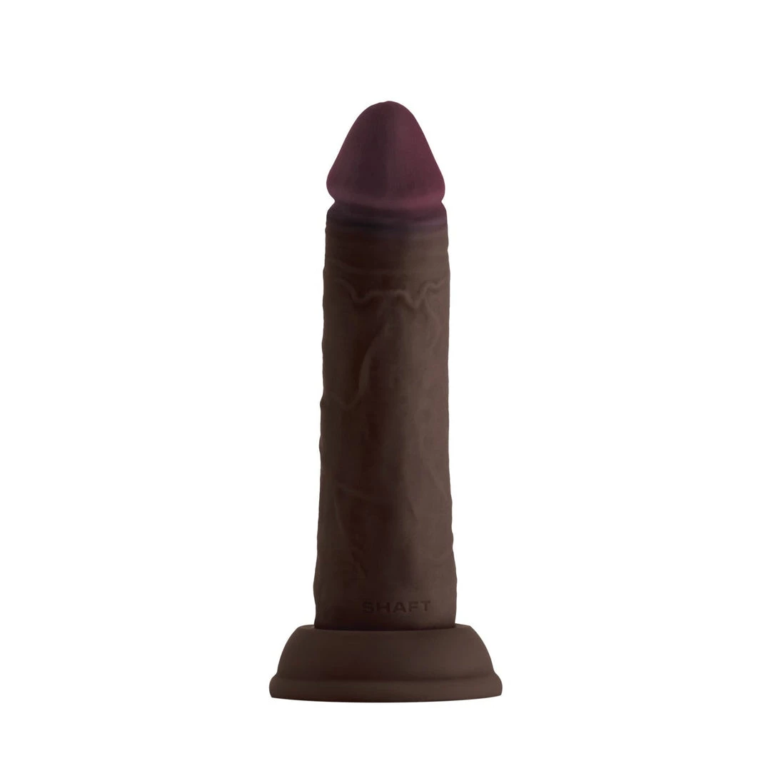 The Shaft Model J Flexiskin Liquid Silicone 6.5-Inch Dildo is a realistically designed dildo with an ALWAYS UP straight design. The Model J 6.5-Inch features a dual-density design with an inner core made from firmer silicone that supports the dildo. The outer layer is made from Flexiskin liquid silicone, providing a realistic experience. The silicone material is compatible with water-based lubes for comfortable use.