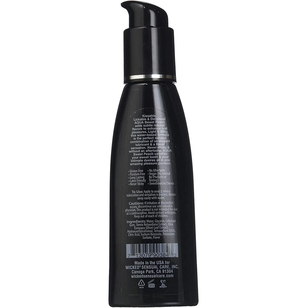 Pucker Up! Kissable, lickable, and delicious, Wicked Aqua Pink Lemonade or Wicked Agua Sweet Peach personal lubricant adds subtle and delicious natural flavors to enhance oral pleasures. Light and silky, this water-based formula is the perfect sensual combination of an elegant lubricant and a flavor sensation. Never sticky and without an aftertaste, Wicked’s flavor satisfies your sweet tooth and your intimate desires all in one amazing pleasure product. Oral sex never tasted so good. Whether you are giving or receiving, Wicked’s flavors will give you a new sexy confidence.
