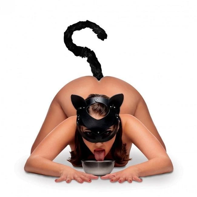 The Tailz Cat Tail Anal Plug and Mask Set is for people who love kitty play. The leather mask is black leather and has cat ears, eye cutouts, and rhinestone-studded rivets. The mask’s band is adjustable around the head via a simple metal buckle, and you can decide if you wish to be the good kitty or the bad kitty.