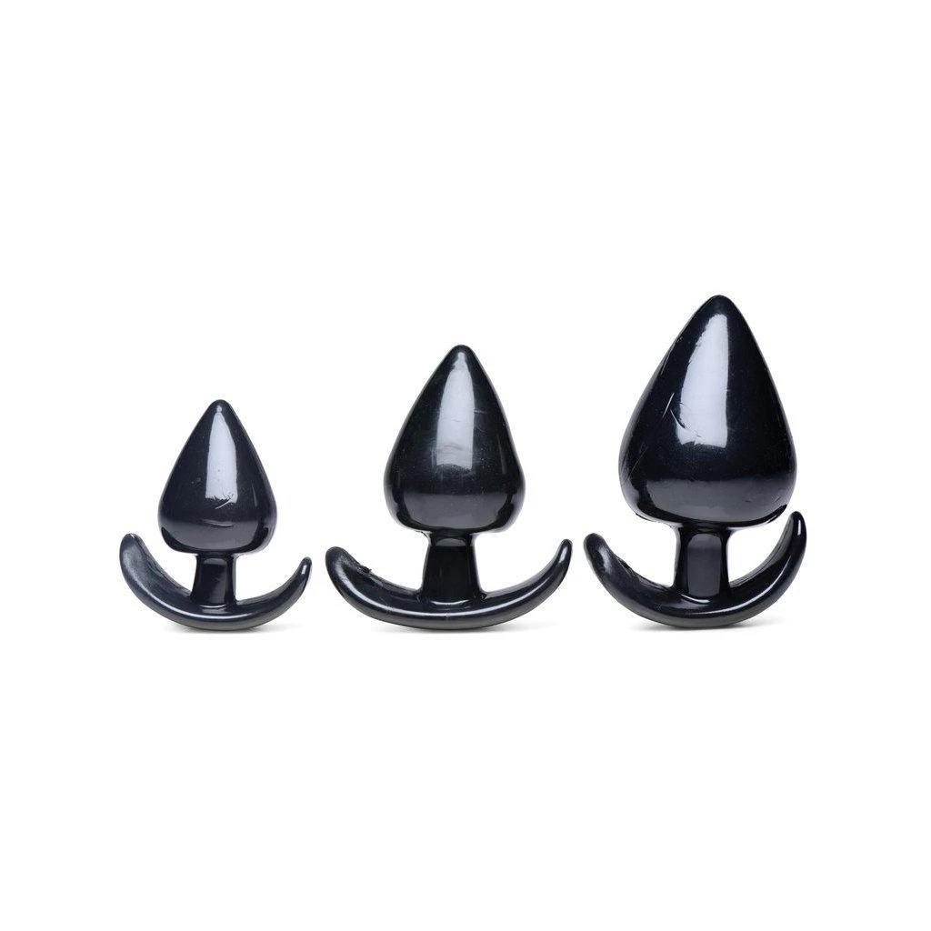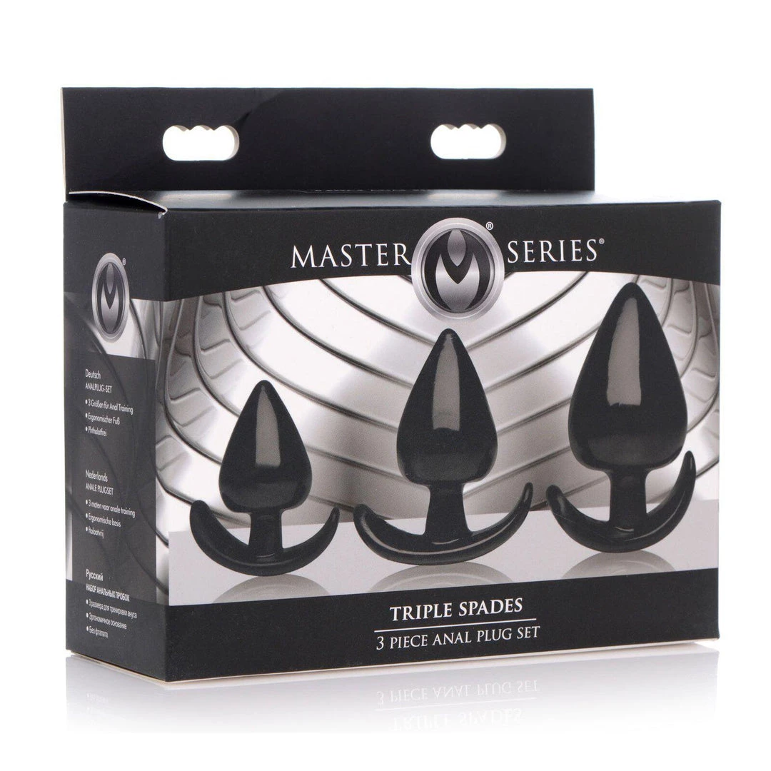 - Graduated, spade shaped, anal plug set with a tapered tip for easy insertion, while the flared ergonomic base holds them in place perfectly