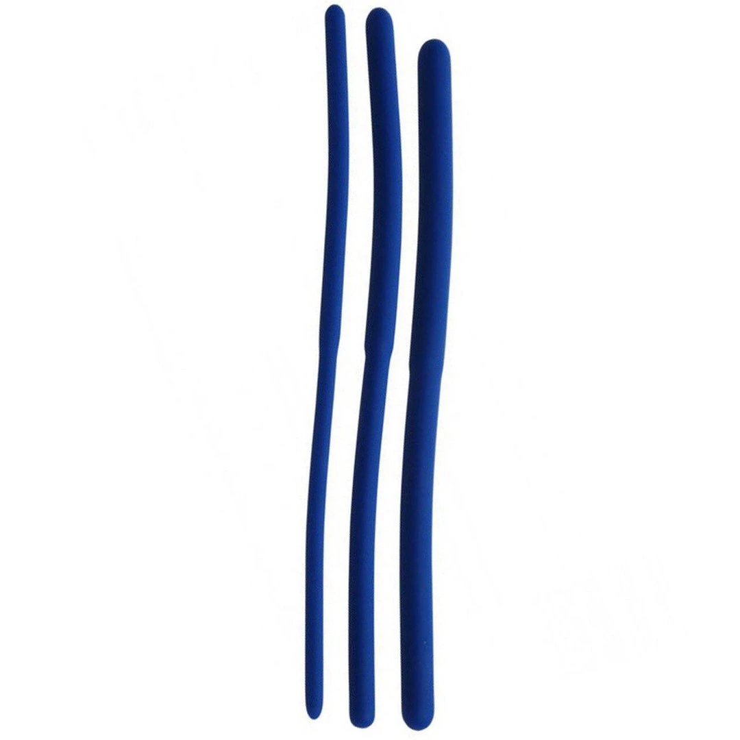These flexible rods bend with the body, sliding down your shaft for that unique sensation that you crave. Each sound is double-sided, with a different sized girth on each end. The graduated sizes allow you to work your way up until your stretched-out piss hole can accommodate the largest rod! Made of premium, phthalate-free and non-porous silicone, these urethral sounds are easy to sterilize and body safe for an all new sounding experience.