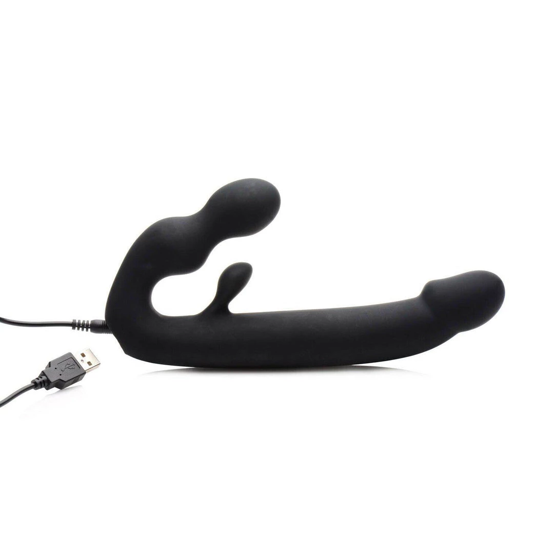 Both partners receive powerful pulsating pleasure from this double-sided strapless strap-on. A slender shaft, clitoral stem, dual bulbs for the wearer, and 7 incredible modes of vibration set this beautiful strapless strap-on apart! This rechargeable pleasure tool features dual motors to provide you with 3 speeds and 4 patterns of powerful internal thrumming.