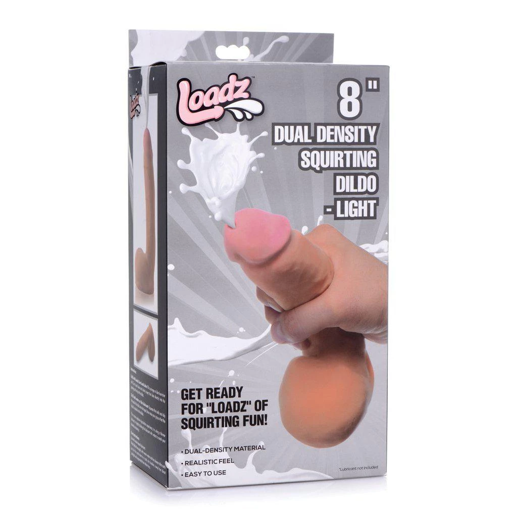 A very nicely designed dildo, the Loadz Dual Density Squirting Dildo has more to offer than a regular dildo. It is made in a dual-density design, meaning a stiffer inner core with a softer, more pliable outer layer. The dildo features a phallic head and a pair of nice, hefty balls.