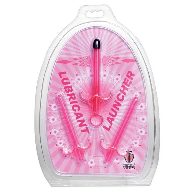Load it up and shoot it out, it is as simple as that! The lubricant launchers narrowed injector makes it easy to ease into anal or vaginal play by lubricating those hard to reach places. The convenient finger grips allow for precise insertion while the attractive casing is easy to clean. Includes two additional launchers. From XR Brands.