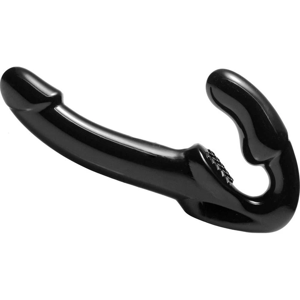 - Strapless strap-on dildo with an ergonomically curved bulb