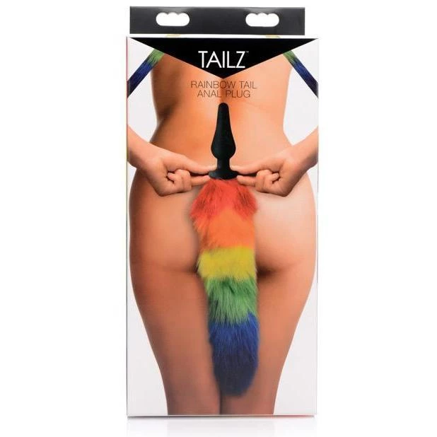 This rainbow tail butt plug is bright, fun, and has a generous length/width, letting you swish, prance and play with a rainbow of fun trailing from behind. The solidly flexible plug is tapered for an easy fit, and is slightly longer than most, giving first time to intermediate users an extra thrill, while keeping it real with ease of retention and safety from unwanted travel.