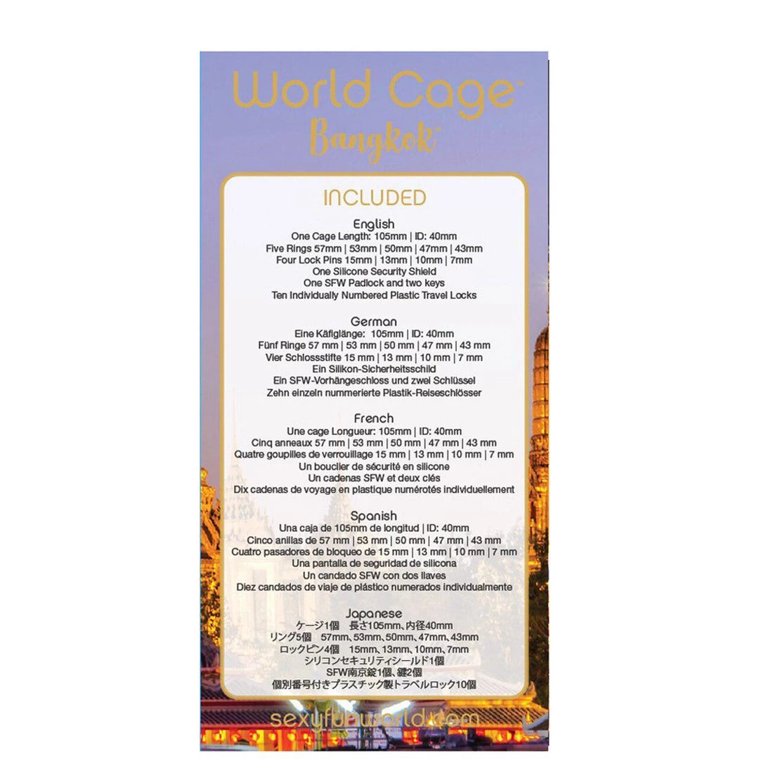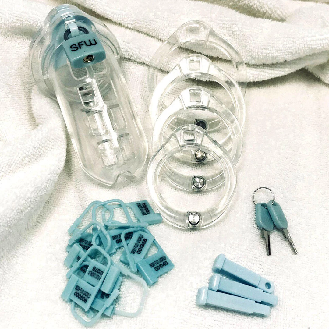 Features: Chasity cage, inescapable, comfortable, designed for long term wear, restricts erection, includes brass security lock, one-size-fits-most, clear design, phthalate-free, body safe